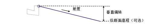 从附着点按照插入方向沿给定的坡度添加连接,直至该连接达到给定的高程。如果在运行时指定了纵断面名称,则垂直偏转将被调整,以匹配纵断面高程。