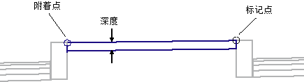 将中间带连接的顶部插入附着点与标记点之间。如果给定非零的“深度”值,则将中间带连接的底部与顶部平行地插入,并添加垂直连接使造型闭合。