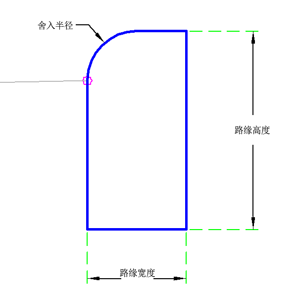 附着点位于路缘墙半径点起点。