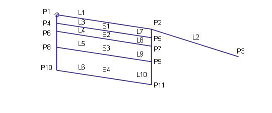 将使用给定的“铺装宽度”、“铺装百分比坡度”和材质深度向外插入路肩完工坡面、铺装 1、铺装 2、基准曲面和底基层曲面连接。如果“未铺装连接的处理方式”设置为 1,那么在任何情形中都要插入未铺装路肩连接。如果“未铺装连接的处理方式”的代码为 2,那么将检查铺装路肩的外侧边缘,以确定它是处于挖方还是填方中;仅当处于挖方中时,才会插入未铺装路肩连接。如果处理方式代码为 3,将在处于挖方中时,或当铺装路肩连接的百分比坡度为正值时,使用未铺装连接。除非“铺装百分比坡度”与“未铺装百分比坡度”之间的差值超过“未铺装最大坡度变化”值,否则未铺装完工坡面连接将按给定的“未铺装百分比坡度”插入。在差值过大的情形中,将调整未铺装连接的坡度,使差值保持为给定的坡度变化。