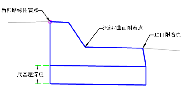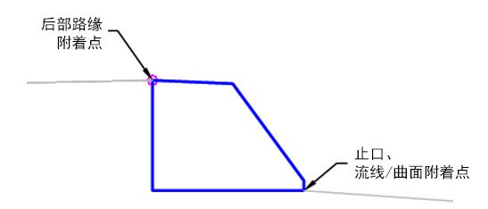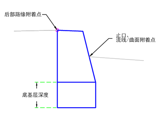 | 附着点 | 指定路缘附着点所在的位置。 | 止口/路缘后面/流线曲面 |