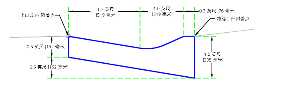 CaltransCurbs 部件可以插入连接,以基于 Caltrans 标准平面 RSP A87A 创建路缘和边沟。