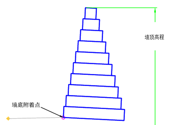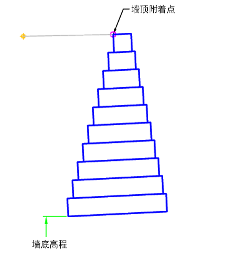 | 墙顶高程 | 当附着点设置为墙底时,可用于设置墙顶高程。以下对象类型可用作用于指定高程的目标:纵断面、三维多段线、要素线或测量地物。 | 附着点为墙底时所需 |