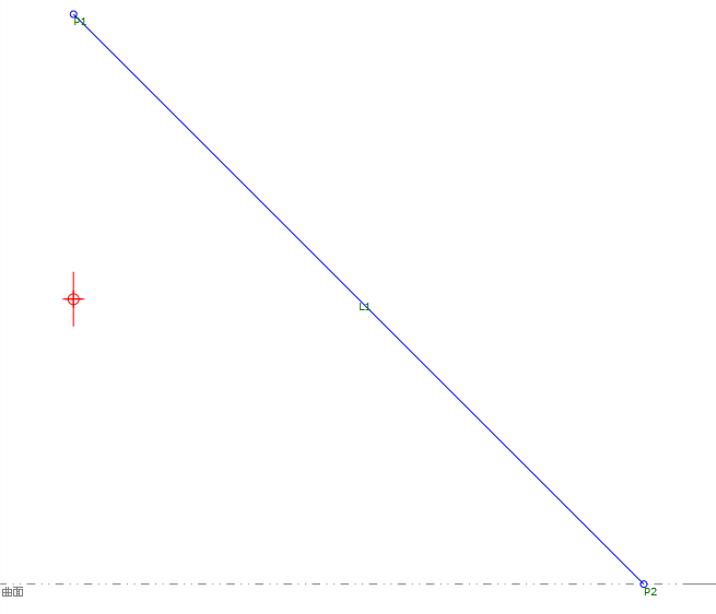在样例 PKT 中,在曲面上从 P1 按指定的 X 增量值绘制 P2。 “设定输出参数”元素使用 API 调用获取 L1 的坡度值。 然后,另一个部件可以参考该坡度值作为输入参数。