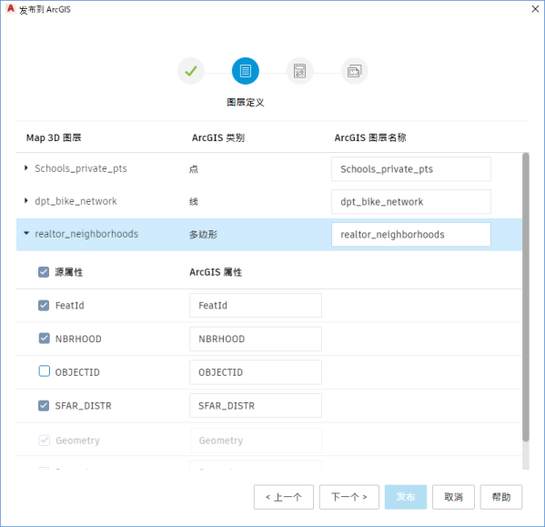 将 FDO 矢量图层数据发布到 ArcGIS Online 或 ArcGIS Enterprise 门户网站。