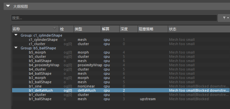 | 当 Maya 处于空闲状态时不会发生任何操作。若要触发图表重建并构建缓存,必须执行一项操作,例如更改时间。