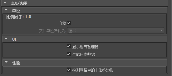 注: 请确认 Maya 场景所用的“系统单位”(System Units),以便控制 Maya FBX 插件是否需要缩放场景。