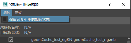 使用编辑器顶部“选项”(Options)菜单中的“保留嵌套引用的加载状态”(Preserve load state of nested references)选项,可以设置父引用的加载状态是否影响其下嵌套的子引用加载状态。默认设置为禁用,切换引用的加载状态会影响其中任何子引用的加载状态。