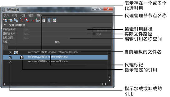通过“引用编辑器”(Reference Editor),可以管理场景中的文件和代理引用。