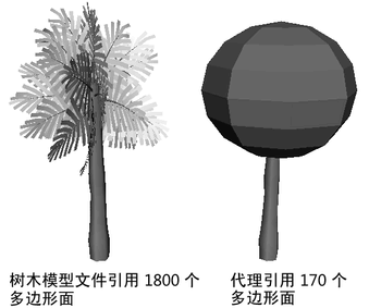 一个场景包含一个到包含树模型的场景的文件引用。将使用更加简单的代理引用替换引用的树。