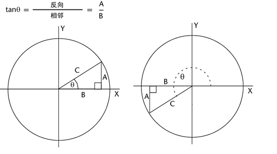 对于任何直角三角形而言,锐角的切线都是以下比率: