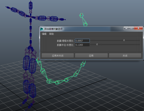 “Bullet > 将碰撞对象添加到骨架”(Bullet > Add Colliders to Skeleton))调整胶囊生成过程。