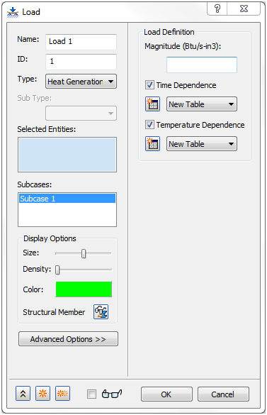 热生成可与时间和温度相关。如果选中了瞬态传热,则与时间相关;如果选中了非线性传热,则与温度相关。