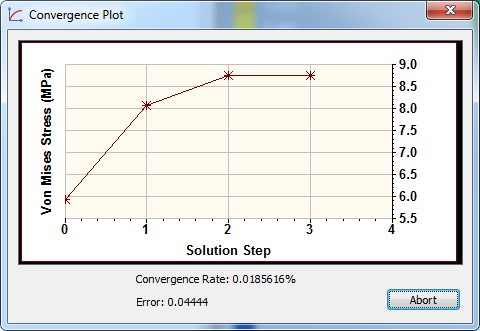 停止条件 (%) 设置后续细化结果之间差异的最小百分比值。如果该值小于此最小值,则细化停止。要收敛的结果是 Von Mises 应力。