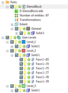 若要显示有关 CAD 模型及其层和对象的信息,请单击“零件”