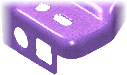 单击“点云”选项卡 >“显示”面板 >“三角形化模式”>“三角形和点”选项,以显示点云三角形和点。例如: