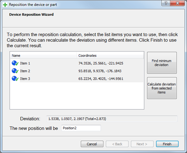 “偏差”区域会显示已选项目的新位置与原始位置之间的总偏差。