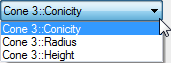 按钮,然后在相邻列表中选择要编辑的参数。列表的内容取决于在步骤 7 中所做的选择。例如,如果选择:- “圆锥”,系统将显示以下选项: