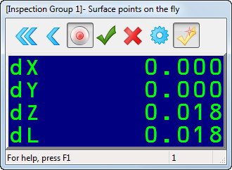 CAD 查看中圆盘的颜色以及“实时曲面点”对话框中的“dL”值指示点在公差内(绿色)、低于公差(蓝色)还是超过公差(黄色)。
