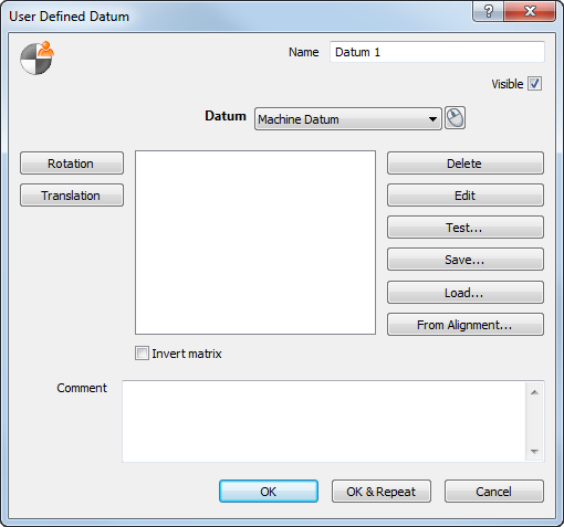 若要加载从对齐定位派生的变换矩阵,请在列表中选择对齐定位,然后单击“确定”。将删除任何变换,并显示从对齐定位的测量值衍生的矩阵。