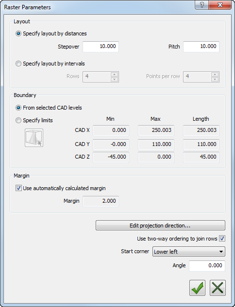 1. 选择“平行”方法,然后单击“参数” 按钮。系统将显示“平行参数”对话框。