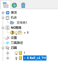 - 在“刀具”列表中选择 8 Ball_LS_TH。