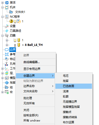 由于这是唯一必须通过此刀具路径精加工的型腔,因此可以为型腔创建边界。