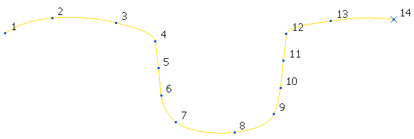 3. 要减少曲线中的点数,同时仍保留点 7、8、14 或 15,请单击“曲线工具”选项卡 >“点”面板 >“重新分布点”以显示“重新分布点曲线”对话框。