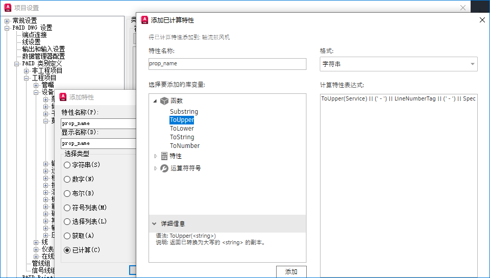 现在,可以从“项目设置”为 P&ID 和三维管道类别添加已计算特性。它使单一字段能够基于将多个字段的数据和定义的值串联为一个值来创建数据。