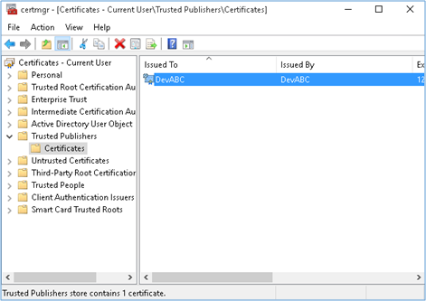 One more step you need when you are making your own digital certificate is to import it to your computer. You can do this in Certificate Manager (CertMgr.msc) or CertUtils.exe tool. Here we use the UI tool. Please refer here for alternatives.