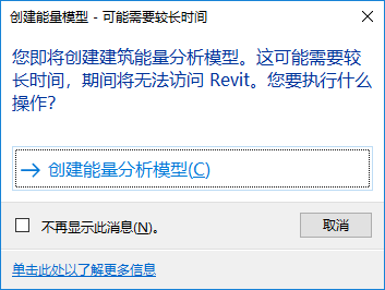 此对话框可避免意外启动能量分析模型创建过程。若要以后跳过该消息,请选中该复选框。