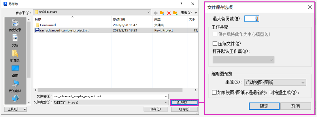 在“另存为选项”对话框中的“最大备份数”下,指定要保存的备份文件数量。