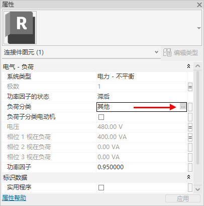 在“属性”选项板中,单击“负荷分类”对应的值,以及显示的