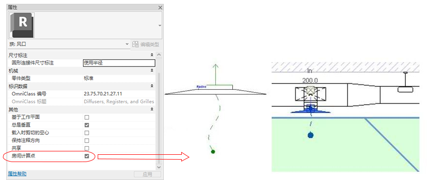编辑族以启用“房间计算点”,然后移动计算点的位置,使其位于空间内部。 在族编辑器中的“属性”选项板上,启用“房间计算点”。 编辑“房间计算点”的位置,使其位于空间内部。