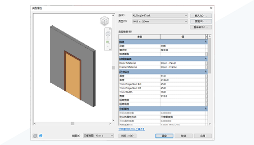 要更好地可视化模型中图元的显示方式,请在“类型属性”对话框中将视觉样式应用于该图元。