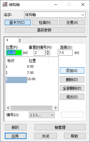 可以使用三种不同类型的轴:笛卡尔轴、圆柱轴和任意轴。在这种情况下,请确认已选择“笛卡尔”作为轴类型。