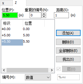 添加米数为“5”和“5.5”的位置。由于这些轴彼此之间的距离不同,因此需要分别输入它们。此外,该标签等于位置值,而不是标签的编号,如下所示。