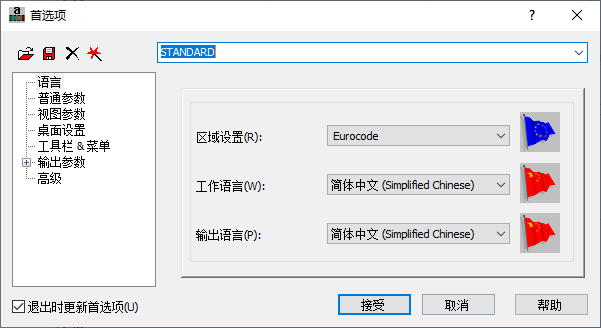 在“首选项”对话框的“语言”区域中,将“区域设置”设置为“欧洲规范”,如下所示。