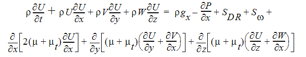 CpwT'. These terms are combinations of fluctuating quantities resulting from averaging the non-linear inertia or advection terms. The extra terms in the momentum equations are called the Reynolds stress terms.
