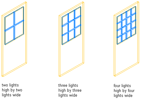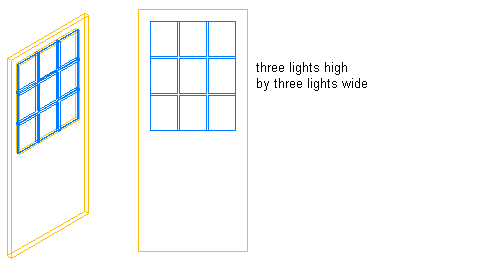 | apply muntins to an individual glass component | under Glass Component, select Single, and specify the index number. Lights are indexed counterclockwise, starting from the lower-left corner. |