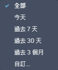 - 過去 3 個月 - 顯示目前日期減去 90 個日曆天的事件。