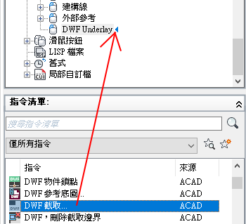 在「指令清單」窗格中,將要加入的指令拖曳至「<