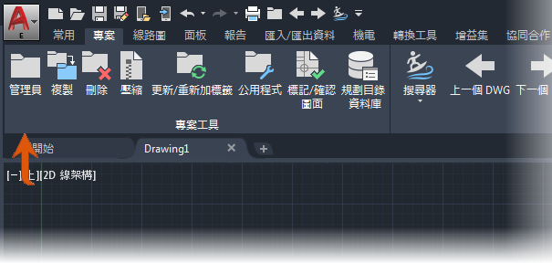 「專案管理員」工具可供您處理專案和專案中包含的圖面。 查找