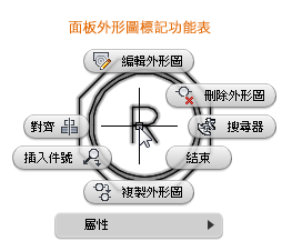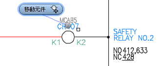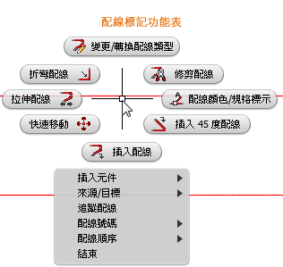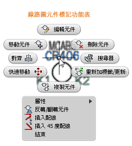 確保目前工作區設定為 AcadE & 2D 製圖與註解。 標記功能表是一個徑向關聯式功能表。將滑鼠停留在 Electrical 物件上並按一下右鍵。功能表上的選項取決於游標下的物件類型。