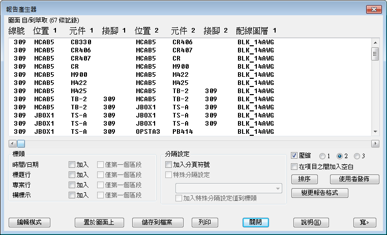 萃取設定中每個圖面的專案,並顯示在報告中。