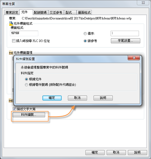 有幾個專案性質會影響料件編號。請確保根據您的偏好設定這些性質,然後再重新排序料件號碼。