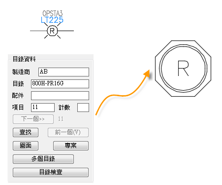 AutoCAD Electrical 工具集 在線路圖元件上使用目錄指定,以尋找正確的面板外形圖。