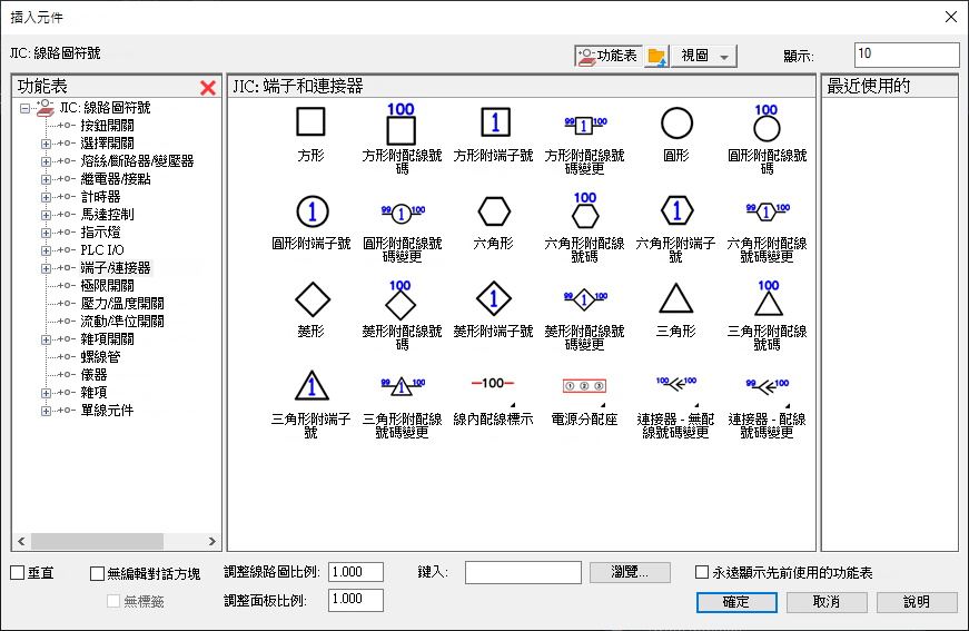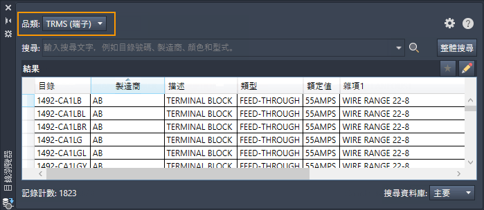 使用「端子排編輯器」可管理整個端子排。您可以變更目錄指定、加入跳線、關聯端子、加入備用項和配件、插入面板端子排等等。在後面的〈面板配置〉主題中,您將瞭解如何使用「端子排編輯器」。 查找