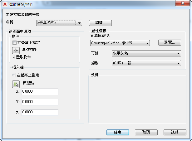 目錄資訊會自動放置於符號上。您可以使用在插入符號後隨即跳出的對話方塊來進一步編輯符號。