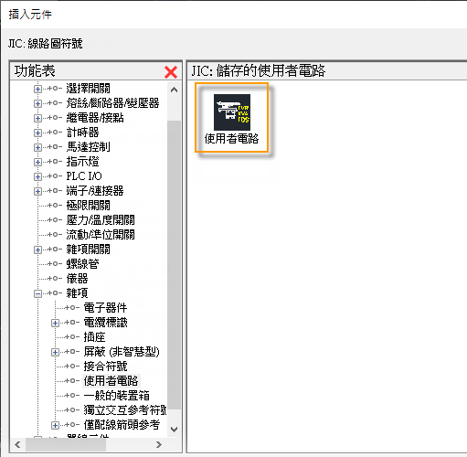 下次您需要該電路時,即可從圖示功能表插入該電路。 查找